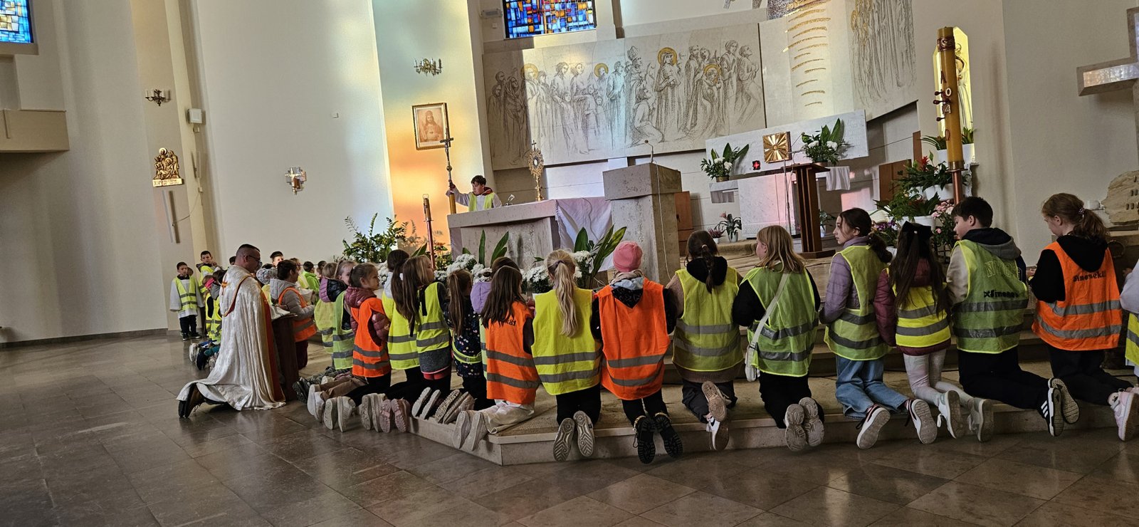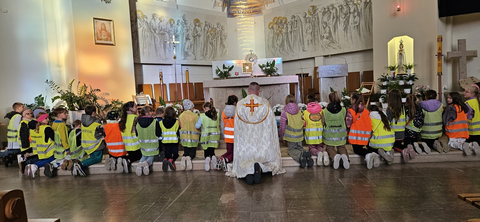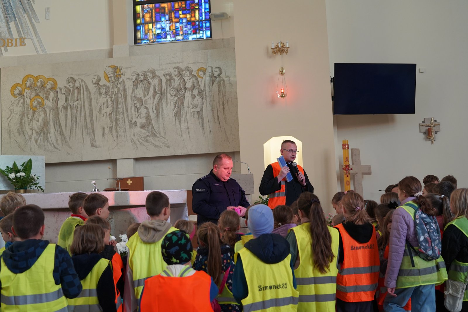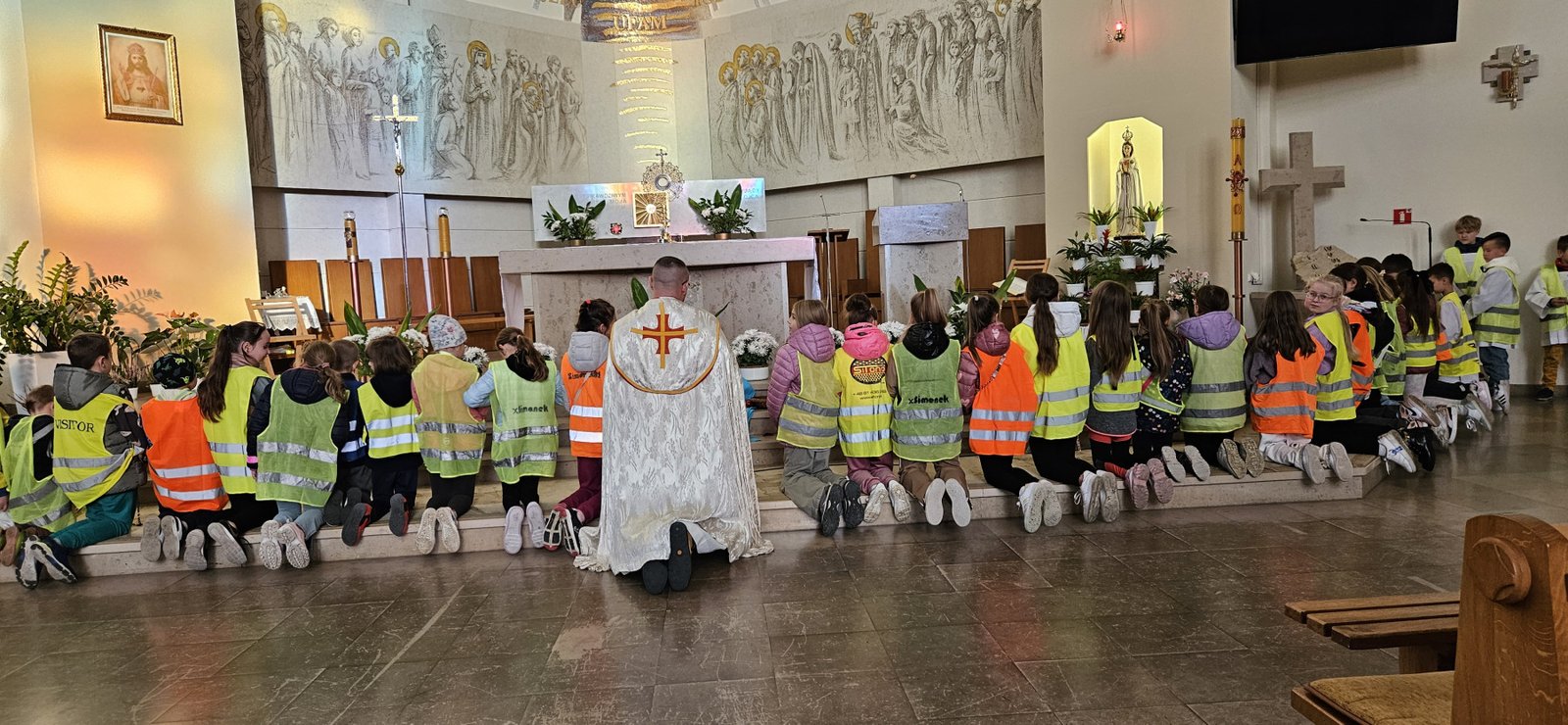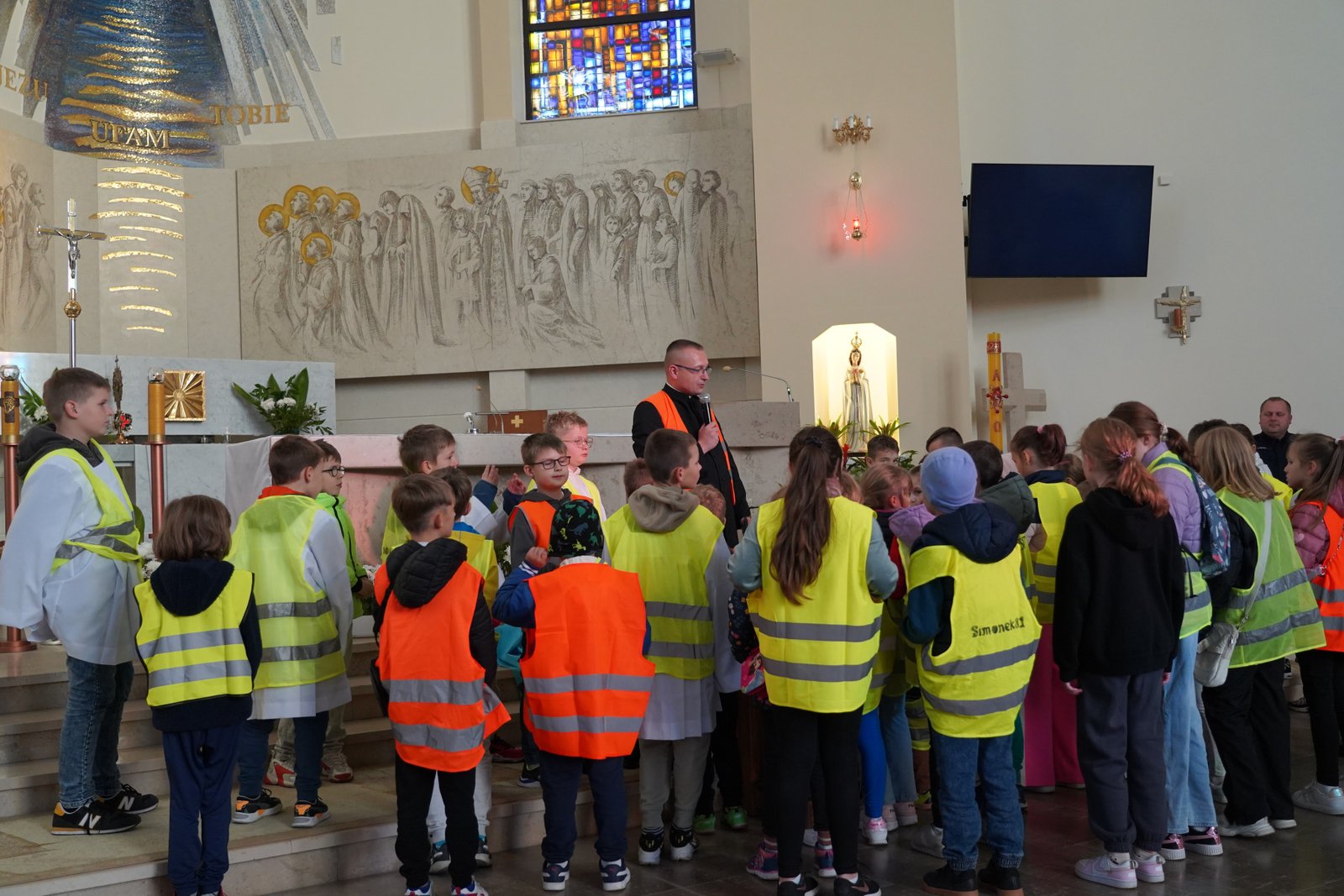 Wszystkie dzieci przyszły dziś do kościoła w kamizelkach odblaskowych, co było wyraźnym znakiem ich gotowości do dbania o własne bezpieczeństwo. Nabożeństwo różańcowe po spotkaniu z policjantem miało szczególny wymiar, bo modliliśmy się o bezpieczeństwo na drogach, a także za wszystkie osoby, które narażone są na niebezpieczeństwa podczas podróży. W wydarzeniu uczestniczyło blisko 80 dzieci, co podkreśla wagę takich spotkań.