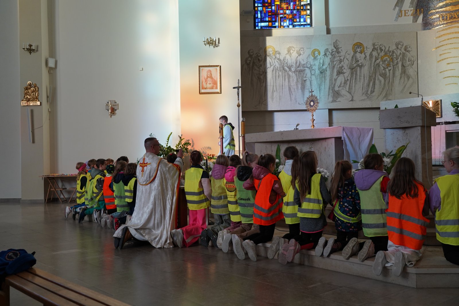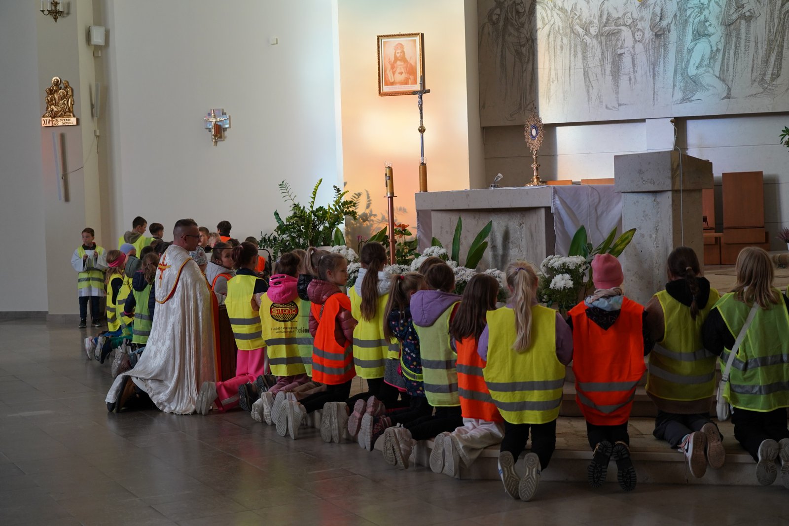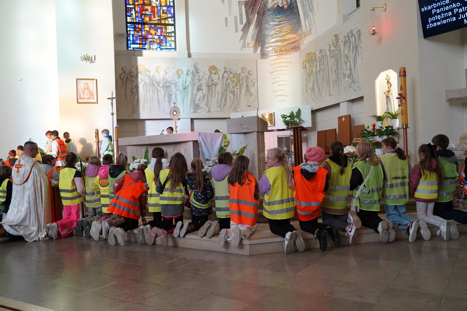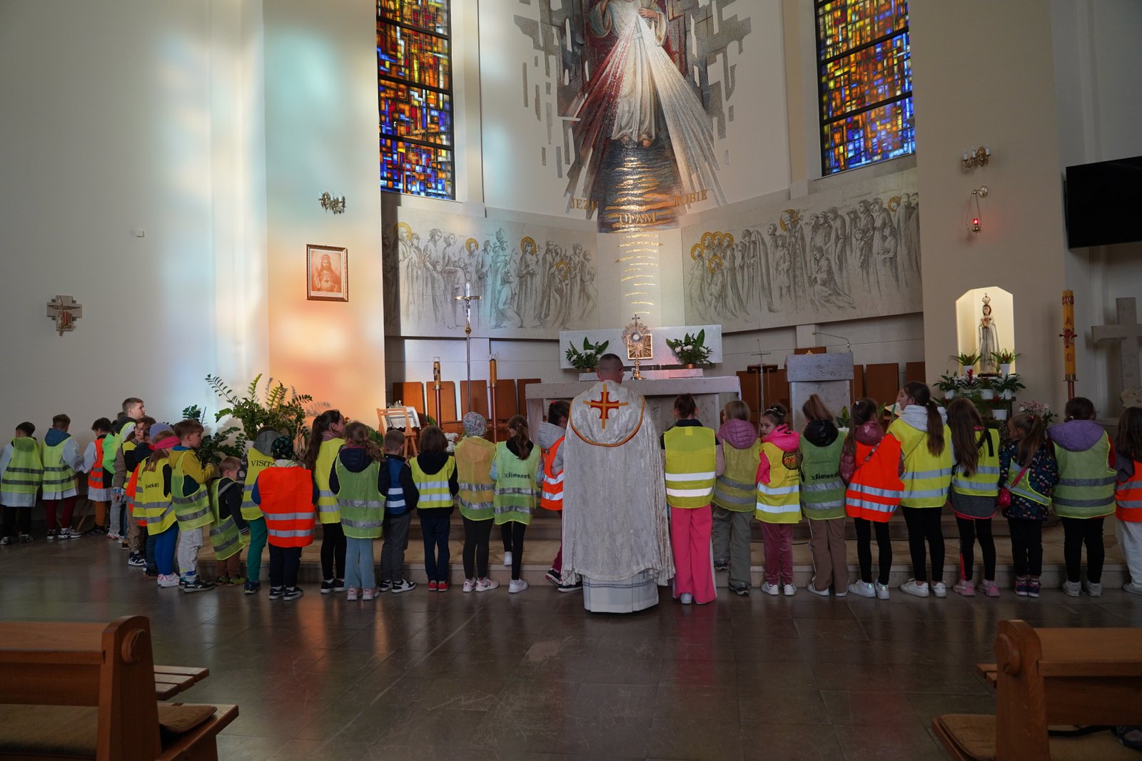 Wszystkie dzieci przyszły dziś do kościoła w kamizelkach odblaskowych, co było wyraźnym znakiem ich gotowości do dbania o własne bezpieczeństwo. Nabożeństwo różańcowe po spotkaniu z policjantem miało szczególny wymiar, bo modliliśmy się o bezpieczeństwo na drogach, a także za wszystkie osoby, które narażone są na niebezpieczeństwa podczas podróży. W wydarzeniu uczestniczyło blisko 80 dzieci, co podkreśla wagę takich spotkań.